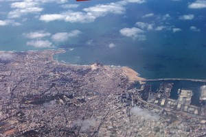 Casablanca from the Air An aerial view of Casablanca with the old Medina and the vast Hassan II Mosque clearly seen.