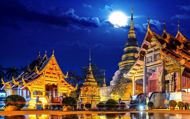 E’ il più scenografico dei templi di Chiang Mai e lo trovi all’interno della cerchia delle mura all’estremità occidentale della Città Vecchia, in fondo a Rachadamnoen Road, l’arteria più importante che taglia il cuore di Chiang Mai da est ad ovest collegando la Thaphae Gate alla Suandork Gate. Risale al XIV secolo e non è solo un tempio antico, è anche un monastero molto grande, composto da numerosi edifici ed abitato da centinaia di monaci, il più vasto a Chiang Mai. Ad attirare irresistibilmente lo sguardo è il suo chedi principale, tutto dorato, alto e slanciato, a forma circolare e decorato da figure di elefanti che fuoriescono dalla sua base quadrata.