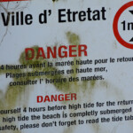 Se per tuo errore ti fai sorprendere dall’alta marea al di sotto delle scogliere quella che era una piacevole escursione rischia di trasformarsi rapidamente in un dramma. Prima di partire controlla con grande accuratezza l’orario di alta e bassa marea, chiaramente affisso alla fine della spiaggia di Étretat ed all’inizio della base della falesia.