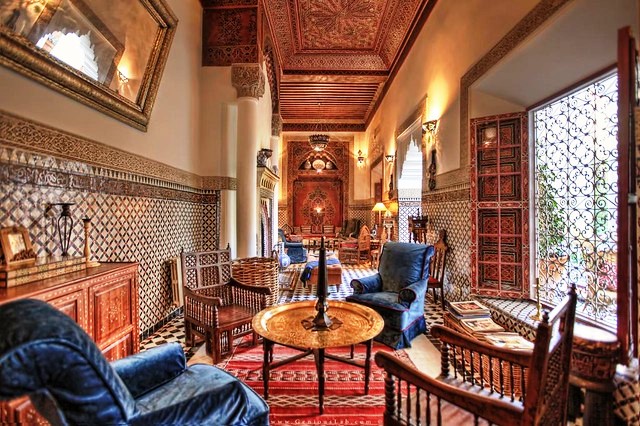 - Perché andarci: un riad autentico, situato in un palazzo storico residenza da 200 anni della famiglia Bouskri, magnificamente restaurato e ricco di oggetti di antiquariato, tappeti berberi, patios ed alcove. Solo 11 camere e suites, arredate da urlo con pezzi autentici ed unici, servizio molto attento e discreto, è qui che ha alloggiato Bill Gates. La piscina è piccola ma gradevole, sauna ed hammam a disposizione degli ospiti, nelle sere invernali si accende il caminetto. Puoi scegliere di pranzare o cenare quando e dove desideri, al pianterreno o sulla magnifica terrazza arredata all’europea del Terrasses des Arts sul rooftop con bella vista sul quartiere di Bab Doukkala. Il proprietario è il disponibile e simpatico Haj Mohamed Bouskri, uno dei più conosciuti ed apprezzati antiquari di Marrakech e guida personale di VIP e celebrities, da Brad Pitt a Tom Cruise, da Nicole Kidman all’ex presidente degli Stati Uniti Ronald Reagan, non disdegna di fermarsi a chiacchierare con gli ospiti, sua l’idea del nuovissimo museo interno al riad, inaugurato durante il Covid, con la raccolta dei cimeli di famiglia. Non accetta bambini sotto i 12 anni.